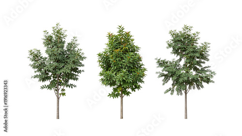 © Volha, Fototapeta premium Isolated young trees with green leaves on white background, symbolizing growth, nature, and environmental awareness