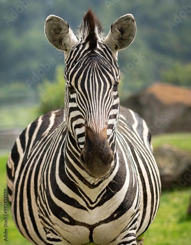 © Artbi, Naklejka premium Isolated zebra with depth of field highlighting unique stripes and majestic stature
