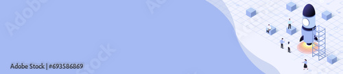 Obraz premium isometric banner illustration of start up business concept vector...