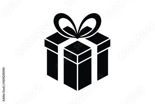 © Murshida, Obraz premium Isometric Black Gift Box with Bow and Ribbon Illustration