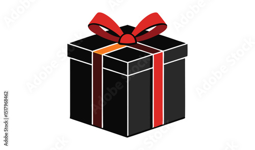 © Isratjahan, Obraz premium Isometric Black Gift Box with Red Ribbon and Decorative Trim Illustration