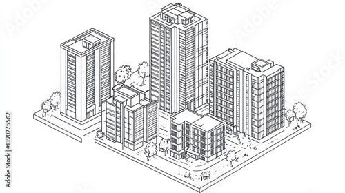 © Mundhut, Fototapeta premium Isometric city architectural illustration showing urban high-rise buildings