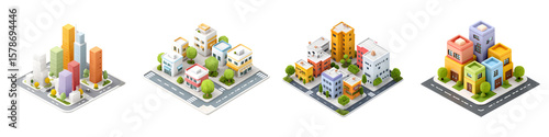Obraz premium Isometric City Blocks Collection - Colorful Urban Planning Concept