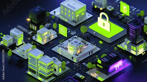 © Gultus, Fototapeta premium Isometric city model with security features.