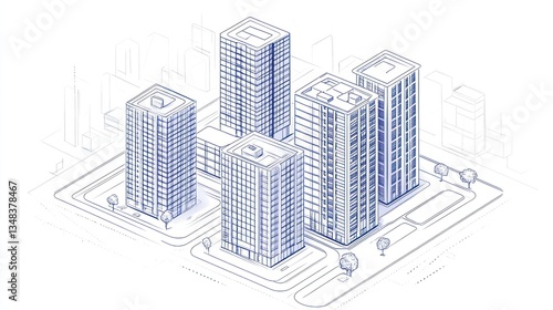 © falikh, Fototapeta premium Isometric City Skyline Architectural Drawing