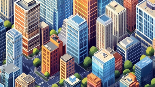 Obraz premium Isometric Cityscape, A Vibrant Urban Landscape with Modern Architecture
