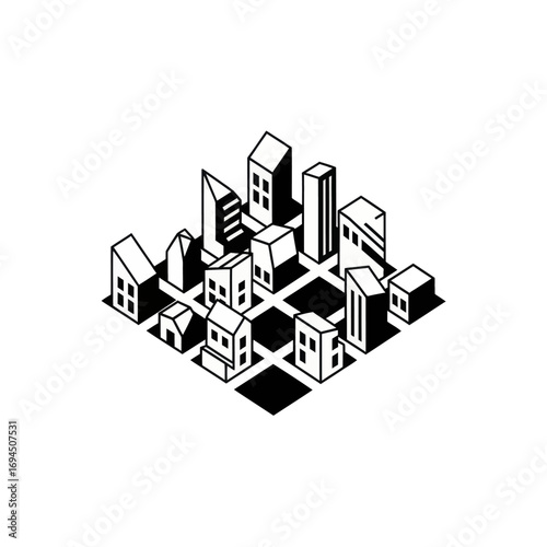 © toriq, Fototapeta premium Isometric Cityscape Building Blocks Illustration.