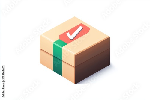 © kriengsak, Obraz premium Isometric 3D Box with Check Mark Icon Approved Success Delivery