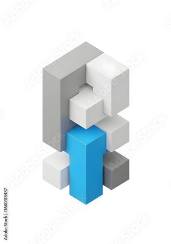 Fototapeta premium Isometric 3D Composition of Interlocking Cubes with a Striking Blue Core Element.
