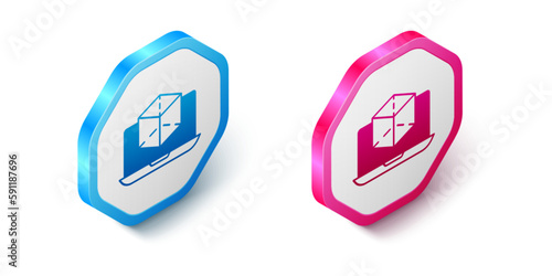 Fototapeta premium Isometric 3d modeling icon isolated on white background. Augmented reality or virtual reality. Hexagon button. Vector