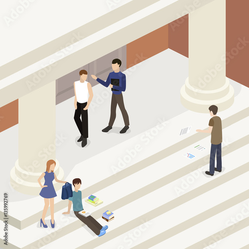 Obraz premium Isometric 3D vector illustration entrance to an educational institution or university or school with students