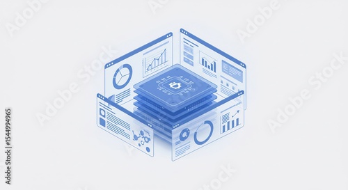 © Minh, Obraz premium Isometric Data Cube Visualization with Blue Charts