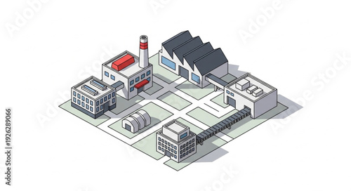 Obraz premium Isometric Factory Building Industrial Complex.