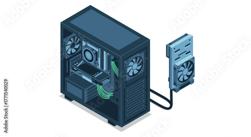 © Ophelia, Obraz premium Isometric gaming pc with detached hard drive on white background