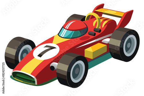 © Brojendra, Naklejka premium Isometric red race car with number seven displaying detailed styling elements and design