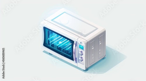 © FryArt, Obraz premium Isometric representation of an open microwave