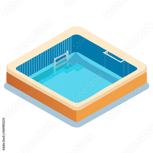 Fototapeta premium Isometric Style Swimming Pool Illustration with Blue Water and Minimalist Ladder