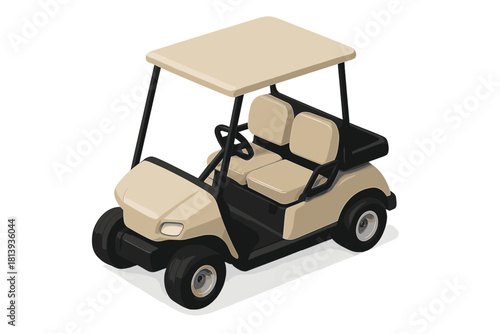 © icon_art, Fototapeta premium Isometric view of a beige and black golf cart for transporting players on the course
