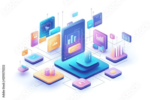 © HiraStock, Fototapeta premium Isometric View of Mobile App and Data Analytics Platform