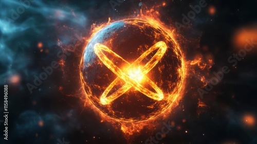 © photolas, Obraz premium Isotopic changes in the atomic nucleus during nuclear fission and energy transformation in a dynamic cosmic environment