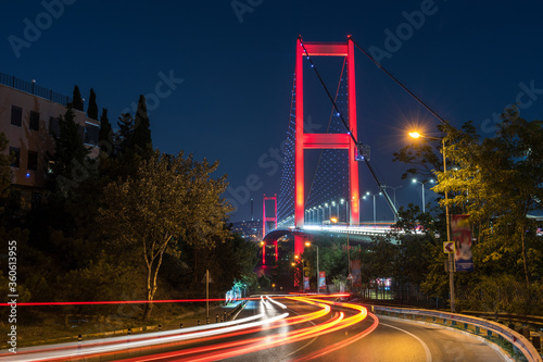 Naklejka premium Istanbul Bosphorus Bridge at sunset in Istanbul, Turkey.
