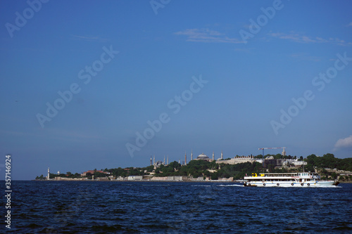 © Volkann, Naklejka premium Istanbul city and The Hagia Sophia Mosque, blue sky and sea