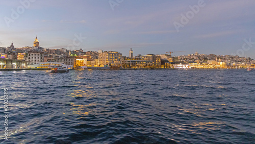 Obraz premium Istanbul Galata at Night Cityscape From Bosphorus Canal Turkey