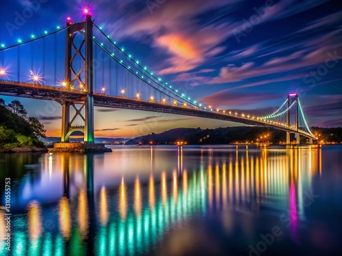 Obraz premium Istanbul Night Scene: 15th July Martyrs Bridge, Illuminated Span Across Bosphorus Strait