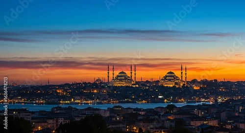 Obraz premium Istanbul Sunset: Sultan Ahmed Mosque Panorama