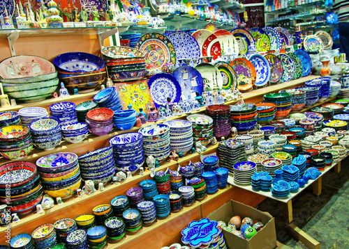 © Gelia, Fototapeta premium ISTANBUL, TURKEY - APRIL 01, 2013: Classical Turkish ceramics on the market
