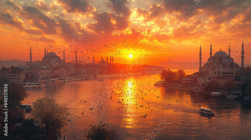 Naklejka premium Istanbul, Turkey city skyline created with Generative AI technology