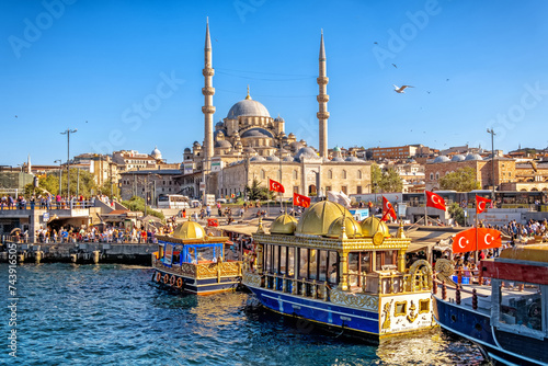 Obraz premium ISTANBUL, TURKEY - September 7, 2022: View of New Sultan Mosque in Eminonu
