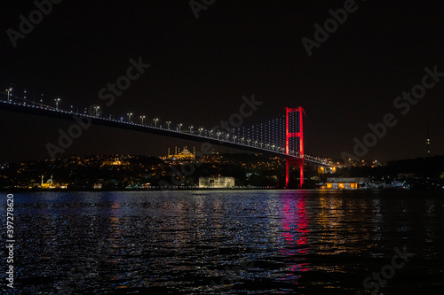 Fototapeta premium Istanbul, Turkey - September 2020:view of the beautiful Bosphorus Bridge at night