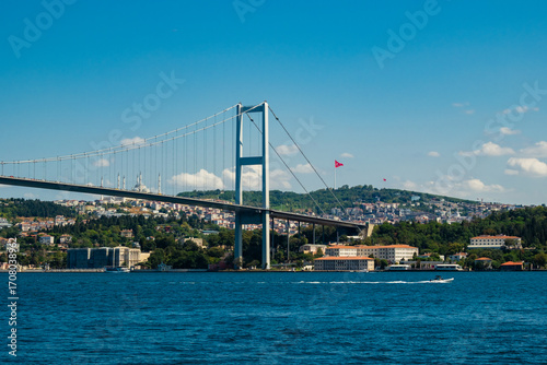 Naklejka premium Istanbul, Turkey. View of the Bosporus Strait and Bosphorus Bridge. Beautiful...