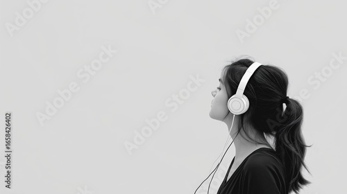 © dimas, Fototapeta premium istening to music with headphones and dancing