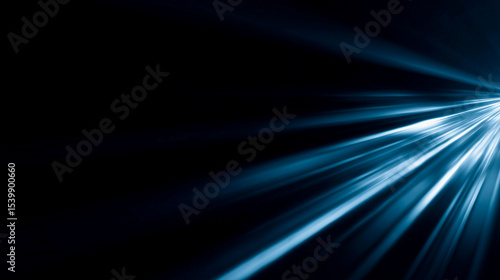 © izzyU, Fototapeta premium 斜めに伸びる青い光線が空間を切り裂くダイナミックな背景(テクノロジー・IT・デジタル・ビジネス)