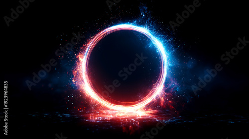 © izzyU, Obraz premium 電流エネルギーリング・テクノロジー背景素材(IT・サイバー・エネルギー)
