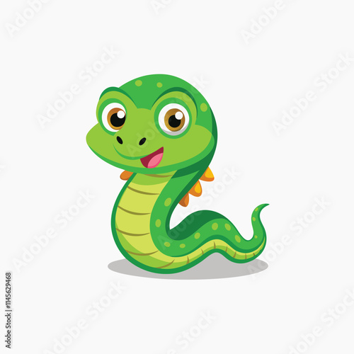 © Nahiduzzaman Shuvo, Fototapeta premium It is cute green snake cartoon white background