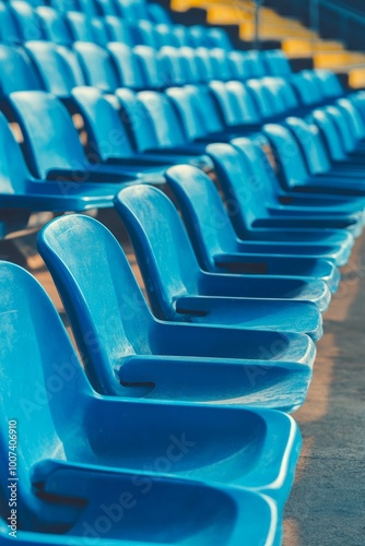© Maxim Borbut, Fototapeta premium It is empty inside the stadium because the blue bleachers are blue