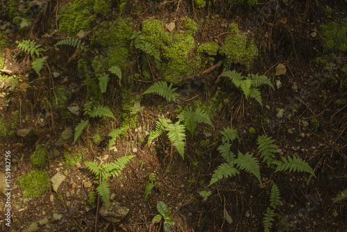 Fototapeta premium It looks like a forest with bracken and moss.