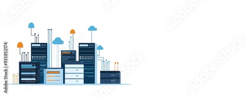 © Sakiyah, Obraz premium IT network management, system infrastructure overview, flat design illustration