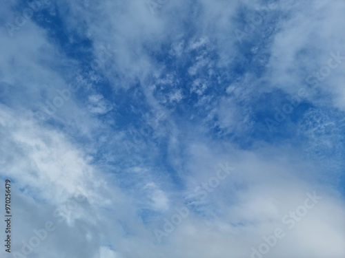 Fototapeta premium It's a blue sky with atmospheric puffy clouds.
