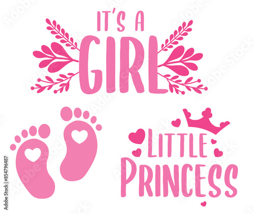 Naklejka premium It's a Girl vector cute illustration for a baby gender annoucement