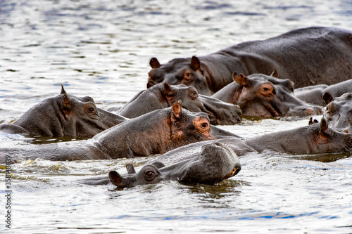 © Anton Ivanov Photo, Fototapeta premium It's Many Hippopotamus, in the Moremi Game Reserve (Okavango River Delta), National Park, Botswana