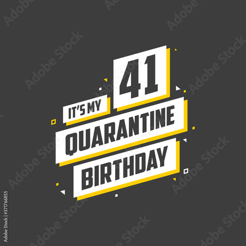 Obraz premium It's my 41 Quarantine birthday, 41 years birthday design. 41st birthday celebration on quarantine.