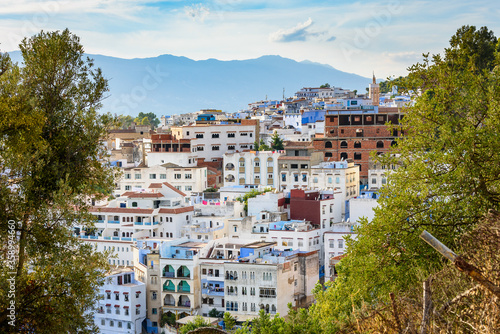 Obraz premium It's Panorama of Chefchaouen, Morocco. Town famous by the blue painted walls of the houses