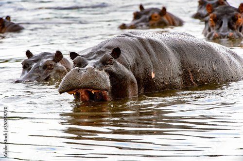 Fototapeta premium It's Scary Hippopotamus in the water, in the Moremi Game Reserve (Okavango River Delta), National Park, Botswana