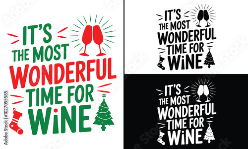 Fototapeta premium It’s the Most Wonderful Time for Wine T-shirt design, Christmas day typography t-shirt design, Christmas typography vector t-shirt design