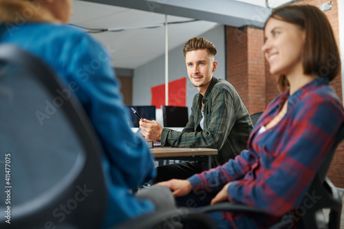 © Nomad_Soul, Fototapeta premium IT specialists talking in office, success work
