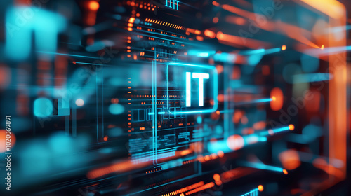 Obraz premium IT virtual screen representation, IT information technology concept on screen, computer system